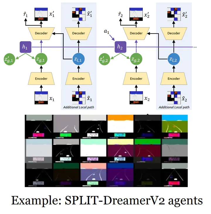 A variational autoencoder (VAE) model that captures global and local variations in its representation can improve generalization performance in downstream tasks. We propose the Separated Paths for Local and Global Information (SPLIT) framework that modifies standard VAE models, enabling them to disentangle global and local visual features explicitly. Our framework requires a subset of the latent variables to generate an auxiliary set of observable data that is obtained by a hand-crafted transformation. This additional generative assumption primes the latent variables to local information and encourages the other latent variables to represent global information. We find that our SPLIT models successfully learn representations that decouple global and local variations in classical datasets. Furthermore, we apply our framework to solve several downstream tasks: clustering, unsupervised object recognition, and visual reinforcement learning. The learned representations are found to be useful for these tasks and improve out-of-distribution generalization performances. The code for our experiments is at https://github.com/51616/split-vae.
